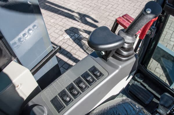 De cabine van de graafmachine is voorzien van een airco, geveerde stoel, radio, en stereo geluid voor de optimale werk ervaring. Ook is er een touchscreen scherm aanwezig in de cabine waarop o.a. de diagnose van de machine en het brandstofniveau te zien zijn.